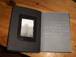 Some pics from my 'real' and virtual desktop: what I can do when I have three clear hours and more materials you can shake a stick at. It's a handmade artist's book (well, it will be when it's finished), designed and made by me, for a launch in Belfast Exposed next Tuesday 9th @6pm. Not anyway near as sophisticated as some of the others' work, but I know how to work within my limits!